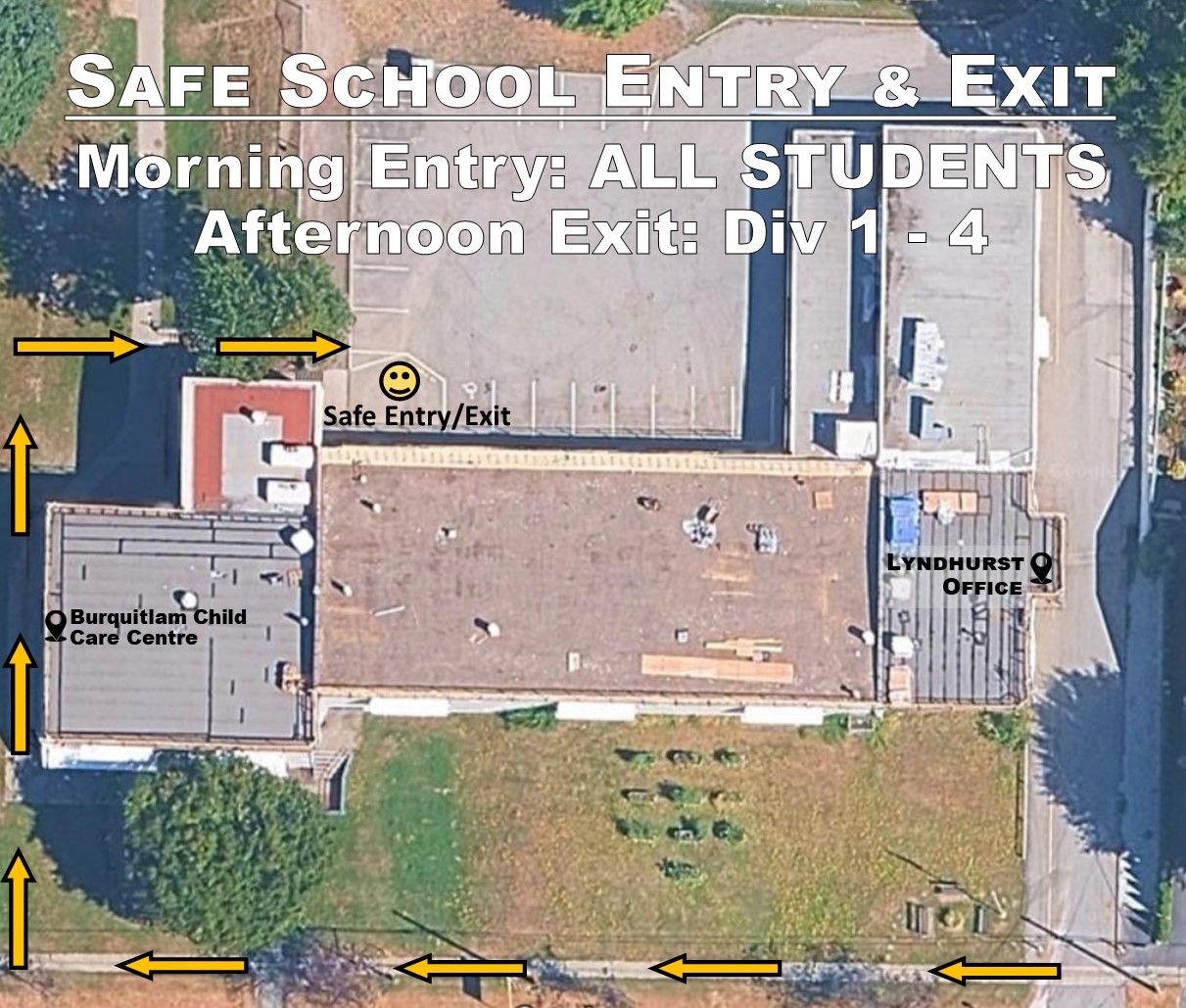 As you are aware, our driveway is a shared pathway for vehicles and pedestrians.  This has been an ongoing concern for all community members and Burnaby School District staff.  We have placed signs along our driveway and we have requested to have 2 speed bumps installed.  In addition to this, to make Lyndhurst a safer place when students, community members, and family members enter and exit the school, we have implemented the following procedures: